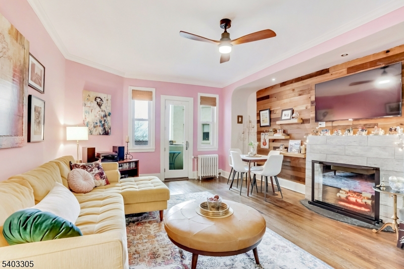 Asbury Park Condo BEACH experience refined coastal living in this distinctive Mediterranean-style 1 bed, 1 bath off Deal Lake Drive, 3 blocks from Asbury Park's iconic beaches, boardwalk, fishing areas, and dog beach. This elegant condo showcases designer shiplap walls, premium ceiling fans, statement chandeliers, updated kitchen and a custom barn door, all complemented by serene lake views. A rare fireplace anchors the living space, while a private balcony overlooks the Courtyard & Lake and offers a tranquil retreat for morning coffee or evening relaxation. This is truly a rare find, it is 1 of the larger 1 beds with 672 sq ft of space, only 5 other similar units in the building. Convenient in-building laundry, mailroom & bike storage, upgraded security system featuring keypad entry.