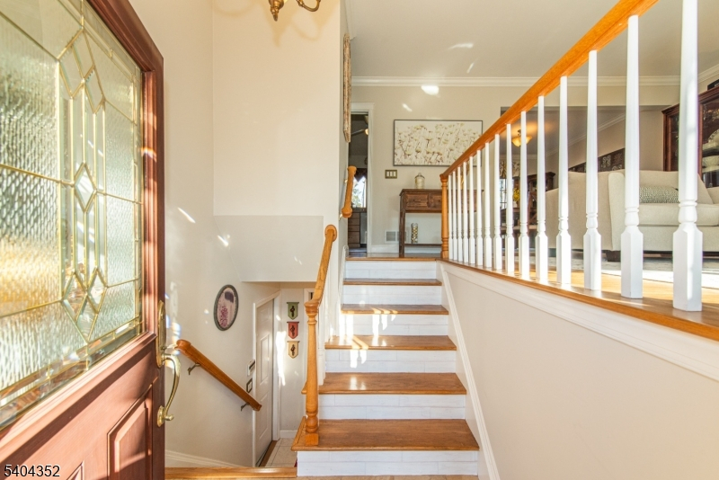 Nestled in the heart of West Caldwell, this warm and inviting home embraces a lifestyle of comfort and distinction. This beautifully updated and maintained, 3 bedroom, 1 full and 2 half bath bilevel boasts a grande a two-story entry foyer that welcomes you to the main level with an open floor plan. The sun filled, updated kitchen boasts, beautiful maple cabinetry, granite counter tops, glass tile backsplash, stainless steel appliances, a built-in granite table top & a vaulted ceiling with skylights. The living room & dining room feature gleaming hardwood floors & crown moldings & provide great space for year-round entertaining. In addition, the dining room provides access to an oversized timber tech deck for dining alfresco and the large level backyard for recreational activities. Three bedrooms and one and a half bath updated bathrooms are also on this main floor.The walk out lower level features the laundry room, half bath, access to the attached 2 car garage and the expansive walk out family room that provides access to the stone patio and level yard with shed.Other fabulous features of this home include: Anderson and Pella windows/door, a finished two car garage with Penntek floor and built in storage, hardwood floors on the main level, central air and so much more. Just steps from the downtown shopping district with fabulous restaurants, houses of worship +2 community pools. Make this your new home for the New Year!!