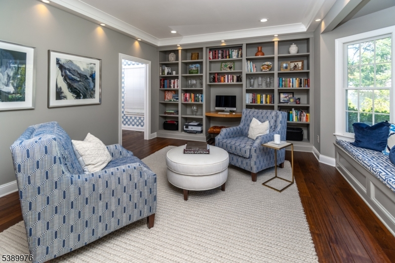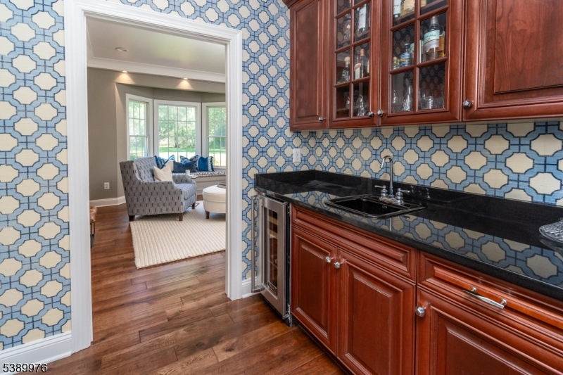 This elegant 5 bedroom, 3 full and 2 half bath Colonial blends classic charm with modern touches. The two-story foyer greets you with a fresh, open feel. The thoughtfully designed eat-in kitchen boasts stainless steel appliances, gas cooktop, double wall ovens, and center island with additional seating. Quartzite countertops throughout. Mudroom with a secondary entrance offers convenience and organization with custom cabinetry. Family room features gas fireplace framed by large windows, while a wet bar connects both the sitting and living rooms.Two powder rooms are conveniently located on the first floor. The butterfly staircase leads to the second floor where you'll find five well-appointed bedrooms. The primary suite includes a generous dressing/sitting room and bathroom with individual vanities, jetted tub and large walk-in shower. Four additional bedrooms, two full baths and laundry room complete the upper level.Hardwood floors throughout the first and second levels.The large, partially finished basement offers endless possibilities - home gym, media room, playroom or more. Enjoy seamless indoor-outdoor living with two access points to the back patio, featuring a built-in grill, refrigerator and wood-burning stone fireplace. Privacy that is perfect for gatherings or quiet relaxation. Three car garage equipped with EV outlet. Add'l highlights include a reverse osmosis H20 filtration system, built-in dehumidifier and generator. Basking Ridge schools w/Far Hills mailing.