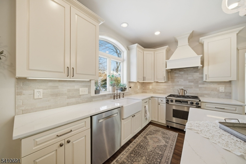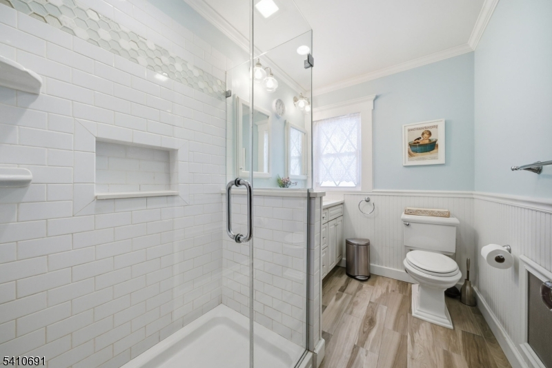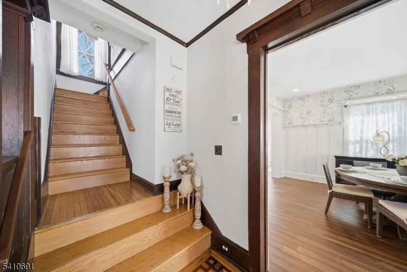 Don't miss this rare opportunity to own a beautifully maintained and thoughtfully updated 5BR, 2.5 BTH center hall Colonial with historical charm & modern updates, on an extraordinary 103 x 147 park-like lot in the best location in Nutley! This huge property offers privacy and space that's increasingly hard to find. A welcoming foyer with original parquet floors leads to rich hardwoods throughout. The renovated open-concept kitchen and dining area features high-end appliances, a center island, and picturesque backyard views, perfect for everyday living and entertaining. The first floor also includes a renovated full bath, laundry, and a gracious living room with a wood-burning fireplace, original Chestnut trim, coffered ceilings, built-ins, and wainscoting, timeless details rarely found in newer construction. A sun-drenched four-season sunroom adds flexible space for a den or office. Upstairs offers four spacious bedrooms, an updated full bath, and a second sunroom off the primary, ideal as a private retreat. The third level includes a fifth bedroom and additional storage. The finished basement expands the living space with a summer kitchen suited for multi-generational living, a powder room with room to expand, guest space, and rec area. Ductless AC on the first floor adds modern comfort. Complete with a 2-car garage, driveway parking for 8+cars, and a large shed, this home sits on a quiet, tree-lined street near all of Nutley's Parks, with easy access to NYC transportation.