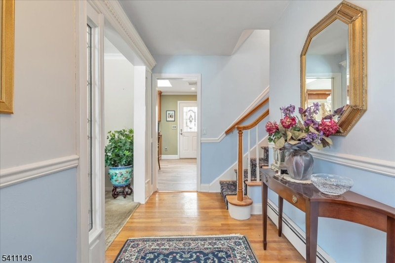 Welcome to this beautifully expanded split-level Home offering exceptional space,thoughtful upgrades, and flexible living designed for today's lifestyle.Featuring 5 bedrooms and 3.5 bathrooms, this home blends timeless design with modern functionality, highlighted by narrow oak hardwood floors, crown molding,and oversized Andersen windows that fill the home with natural light.The inviting living room centers around a gas fireplace and stunning bay window, seamlessly flowing into a formal dining space ideal for entertaining. The heart of the home is the sun-filled quartz kitchen, complete with skylights, stainless steel appliances, tile flooring, Lazy Susan cabinetry, pull-out drawers, and a spacious center island with built-in microwave creating the perfect setting for gatherings both large and small. The primary suite offers a private sitting area, dual closets, and a convenient half bath,while additional bedrooms provide custom storage solutions and access to updated bathrooms. The finished lower level presents endless possibilities with a family room,bedroom, full bath,and laundry area ideal for guests, extended living,or a private suite.Outside, Hardy plank siding, a paver walkway, sprinkler system, patio, and beautifully landscaped grounds enhance the home's curb appeal, while mechanical upgrades including 3-zone gas heat and a water softener add comfort and efficiency. A rare opportunity to own a spacious,flexible home designed for modern living and lasting style.