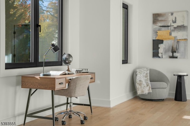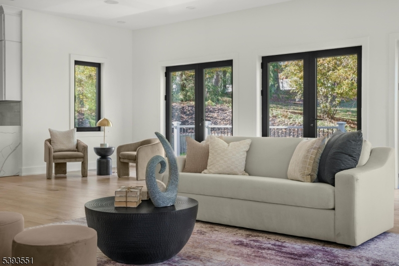 Ideally situated directly in the center of the Hartshorn school district, this newly completed transitional home captures the perfect balance of light, space and design. Spanning nearly 7,000 square feet across three levels, every room was crafted with thoughtful intention and striking detail. The grand entry opens to 10-foot ceilings and oversized windows that fill the home with natural light. The open kitchen, breakfast area and family room span the rear of the home where morning light filters through floor-to-ceiling glass. A wall of French doors leads to an expansive deck overlooking manicured grounds and mature trees. The gourmet kitchen features custom two-tone cabinetry, a full suite of Wolf and Sub-Zero appliances, a butler's pantry with a second dishwasher and beverage refrigerator, and a seamless flow to the formal dining room and living room. A first floor bedroom suite adds convenience. Upstairs, a luxurious primary suite spans the depth of the home with a private balcony, two walk-in closets, and a serene and indulgent bath. Three other spacious bedrooms on this level offer en-suite baths, while the second floor laundry center is equipped for two washers and dryers. The lower level adds a large recreation room, bedroom, full bath, powder room and ample storage. Outside, the property is surrounded by new landscaping, fresh sod and an irrigation system. An oversized two-car garage completes this exceptional residence. Be prepared to fall in love!