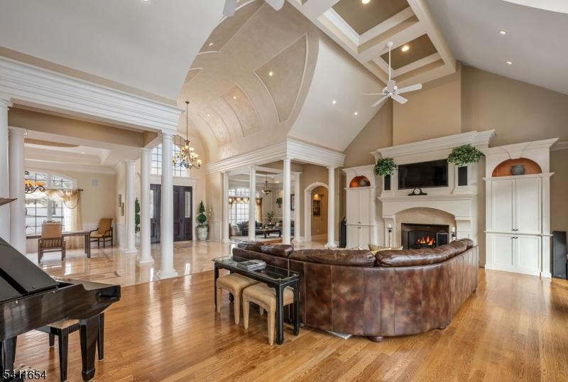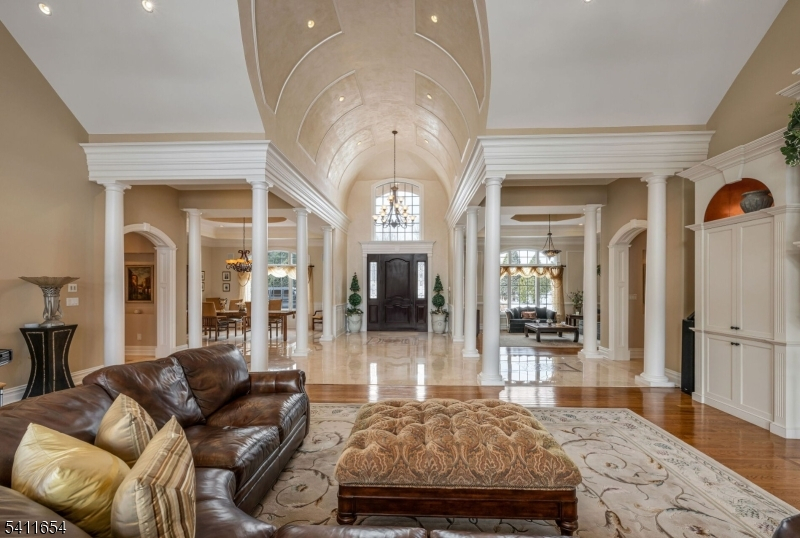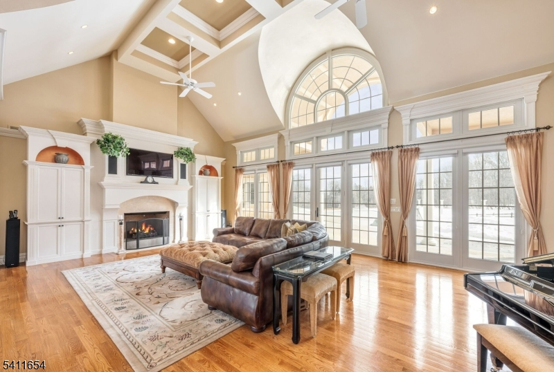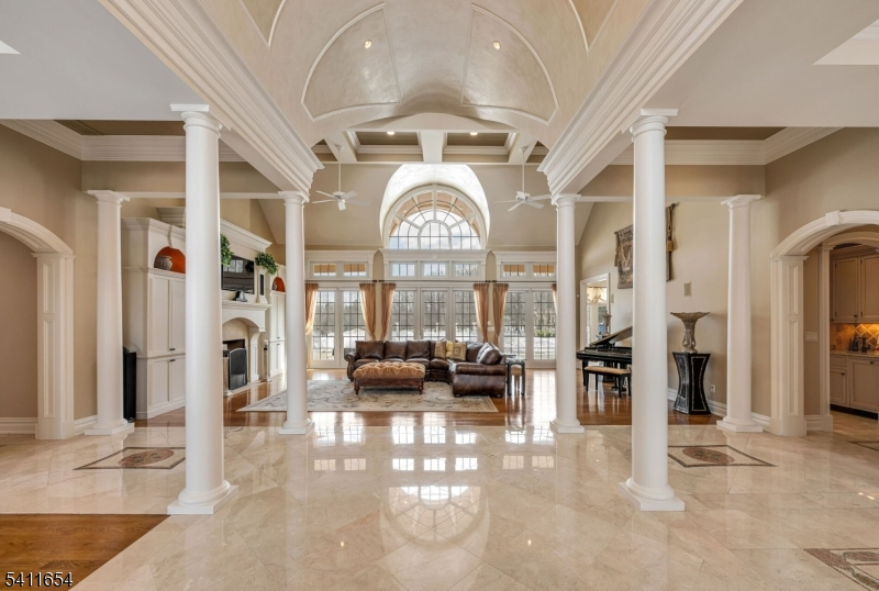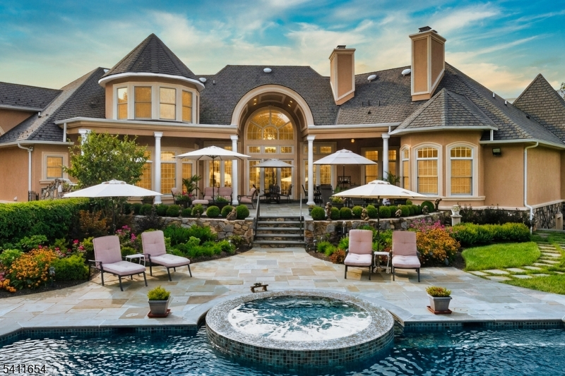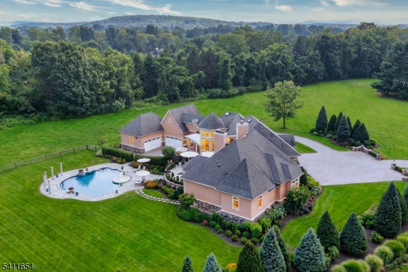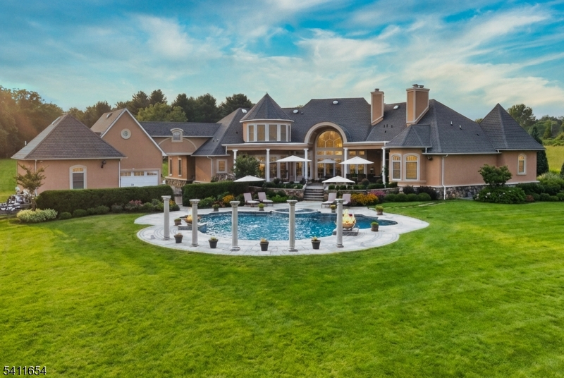Set down a long private driveway on 6.81 acres, this luxury estate offers privacy and convenience near shopping, dining, and major travel routes. Featuring 5 bedrooms and 7 full and 1 half bathrooms, the open-concept layout showcases 24-foot ceilings, floor-to-ceiling windows, and a marble gas fireplace. The gourmet eat-in kitchen includes a large center island, Clive Christian-inspired cabinetry, granite countertops, high-end appliances, and a butler's pantry with a wine fridge. The private primary suite offers a fireplace, sitting area, spa-style bath, and custom walk-in closet. Additional highlights include multiple en suite bedrooms, home theater, wine tasting room, custom bar, gym, 2,800+ sq ft storage, and an oversized 4-car garage. Resort-style outdoor living features 4,000+ sq ft of patio space, Pebble Tec pool, spa, fire bowls, and covered entertaining areas.