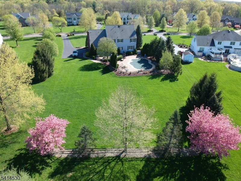 Immaculate Colonial w/Chef's Kitchen & Resort-Style Backyard. Step into timeless elegance w/this beautifully upgraded & superbly maintained 4BR, 2.5-bath home, where every detail has been thoughtfully curated for comfort & style.The heart of the home is a custom kitchen featuring high-end Wolf & Sub Zero appliances, sleek counters, & ample, custom crafted, cherry cabinetry perfect for culinary enthusiasts & entertainers alike. The 8ft mahogany front door is a masterpiece to behold, & welcomes you in to the sunlit foyer. Desirable office, 2 story FR w/gas FP & custom built mantle, mahogany floors & extensive custom millwork throughout complete the main level. Upstairs, 4 spacious BRs offer serene retreats, while the primary suite boasts a luxurious bath & 2 WICs. The backyard oasis, backing to preserved land & complete w/sparkling IG pool, expansive patio, built-in firepit & lush landscaping is ideal for summer gatherings or quiet relaxation. Pristine finishes throughout & a layout designed for modern living, this home is truly move-in ready. A rare find in immaculate condition, it offers proximity to top rated schools, quaint downtowns of Clinton & Flemington w/eateries, brewpubs, & eclectic shops. Discover bucolic Hunterdon Cty, boasting outdoor activities incl. hiking, biking, horseback riding, fishing & kayaking. Many scenic trails lakes, & rivers. Embrace the quintessential charm & endless possibilities of this exceptional home & its surroundings. Newer roof & systems.