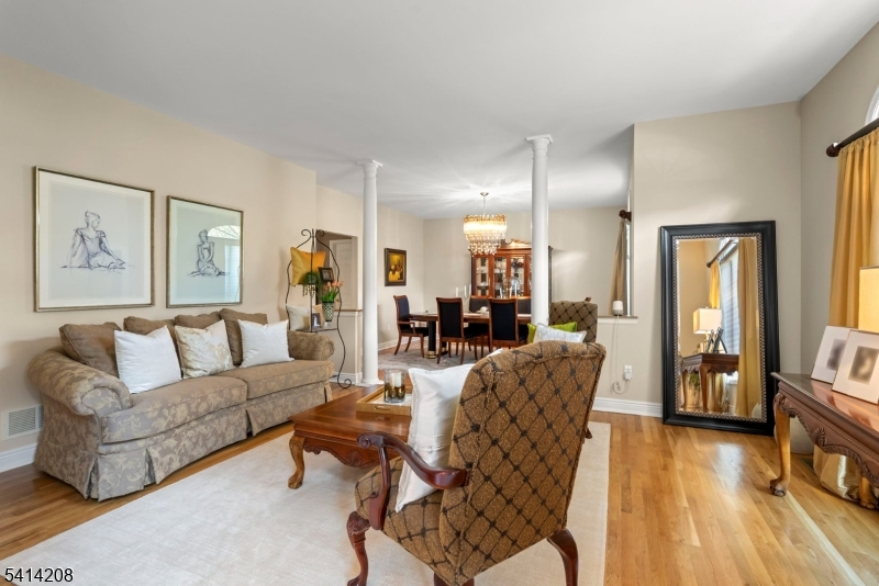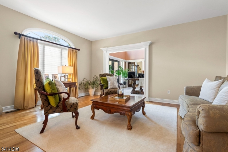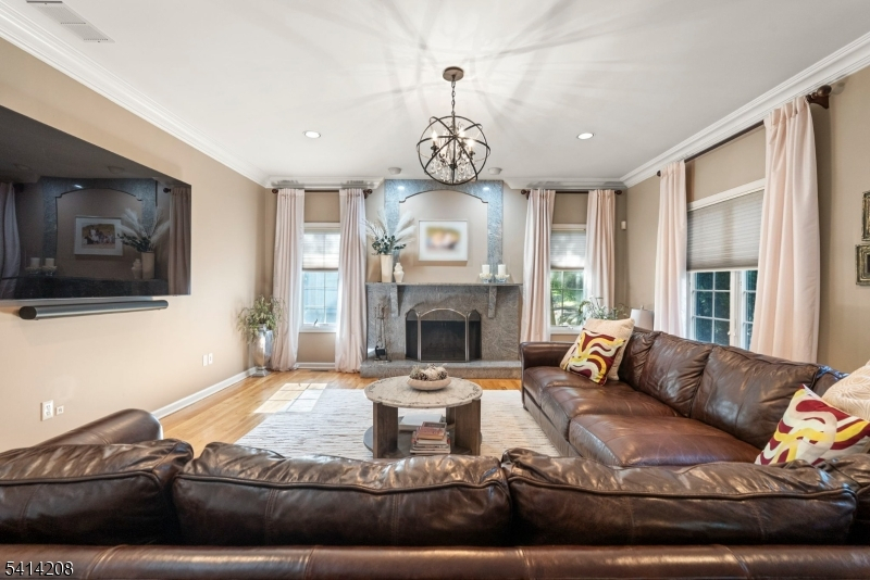 Welcome to Wayne Manor, but not in Gotham - 9 Woodland is a meticulously maintained Center Hall Colonial tucked on a private cul-de-sac in one of Wayne's most desirable locations, offering over 3,300 sqft. of refined yet comfortable living on nearly .40 acres. A grand two-story foyer with wainscoting and abundant natural light sets the tone, leading into a main level featuring 9-foot ceilings, crown molding, hardwood floors, oversized windows, recessed lighting, and a striking floor-to-ceiling granite fireplace anchoring the family room. The renovated kitchen with granite countertops, center island with breakfast bar, pantry, and SS appliances flows seamlessly into the dining and living spaces, along with sliding doors opening to a private paver patio and lush backyard retreat for effortless entertaining. A private office with French doors, laundry room, and updated bath complete the first floor. Upstairs, the expansive primary suite offers a spa-like bath with jetted tub, separate shower, and generous walk-in closets, while 3 additional bedrooms and a full bath provide separate comfort and privacy. The finished, walkout basement with full bath adds flexible recreation or guest space. Newer roof (2021) with 50-year warranty, 2-zone central air and heat, natural gas, public sewer, public water, and a 3-car garage for ample parking and storage. Close to top-rated schools, shopping, dining, major highways, and NJ Transit bus and train options for an easy NYC commute.