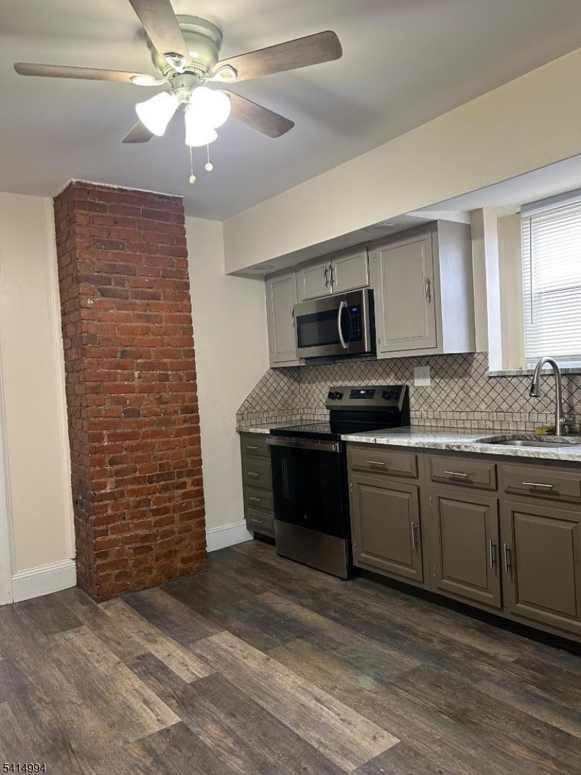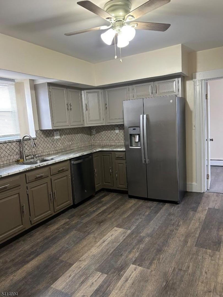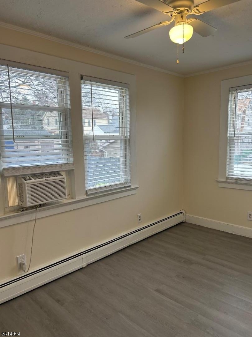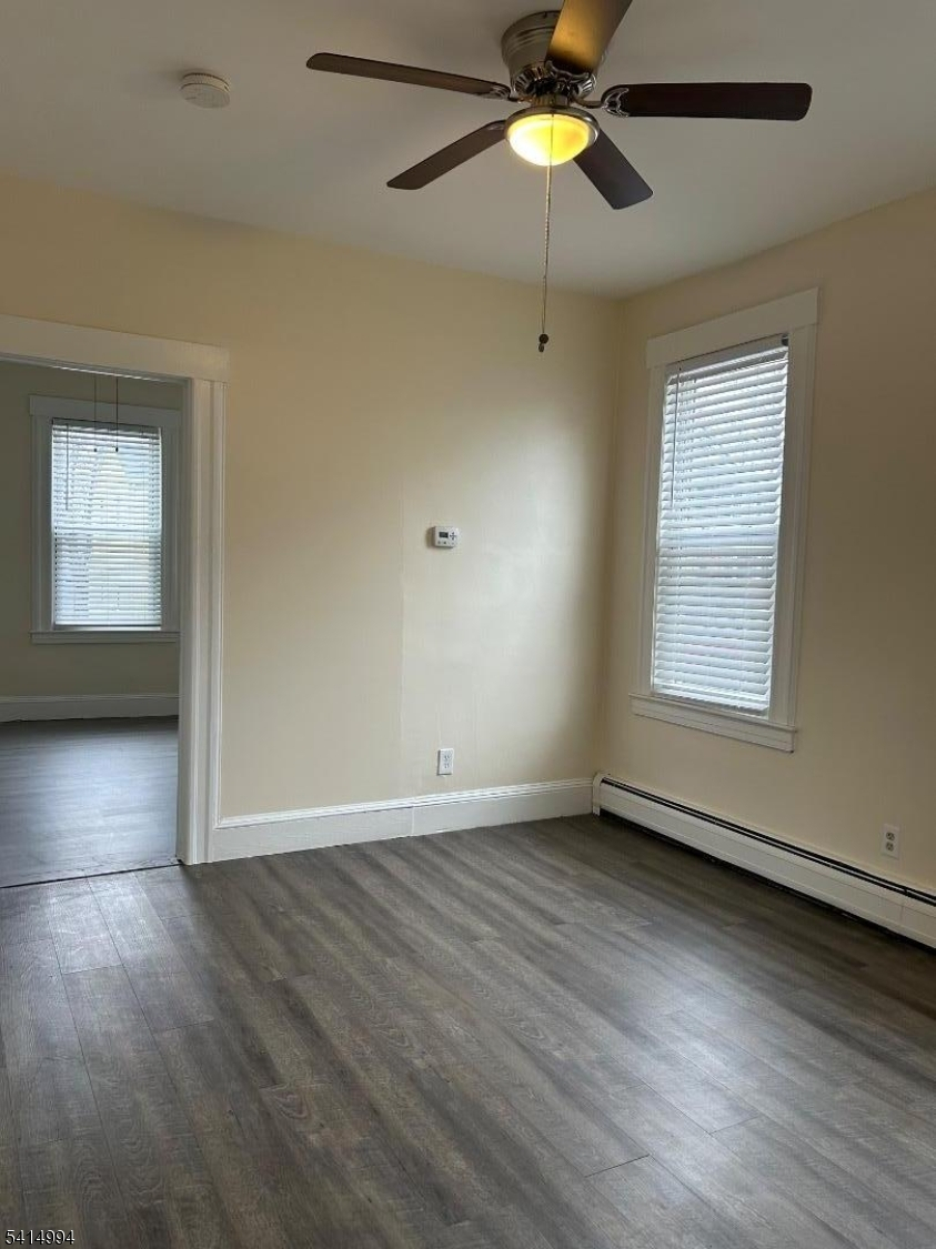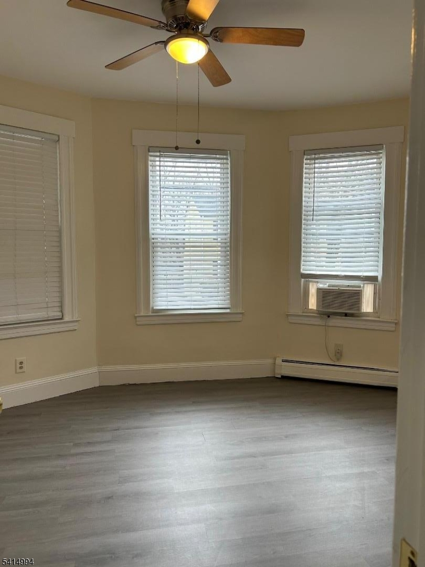 1st floor Spacious 2-bedroom apartment featuring hardwood floors throughout and a newly renovated kitchen. The unit includes window A/C units, baseboard heating, and ceiling fans for year-round comfort. The apartment is cable-ready and comes with window treatments already installed.The property offers one assigned parking space, with the option for an additional parking spot available for $50 per month. Tenants also have access to a shared backyard and a coin-operated laundry room located on-site.