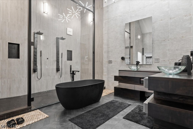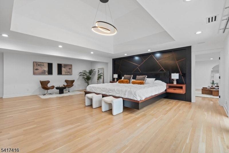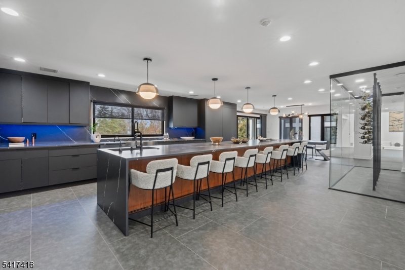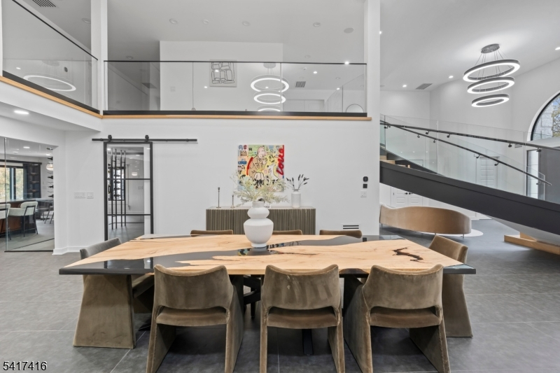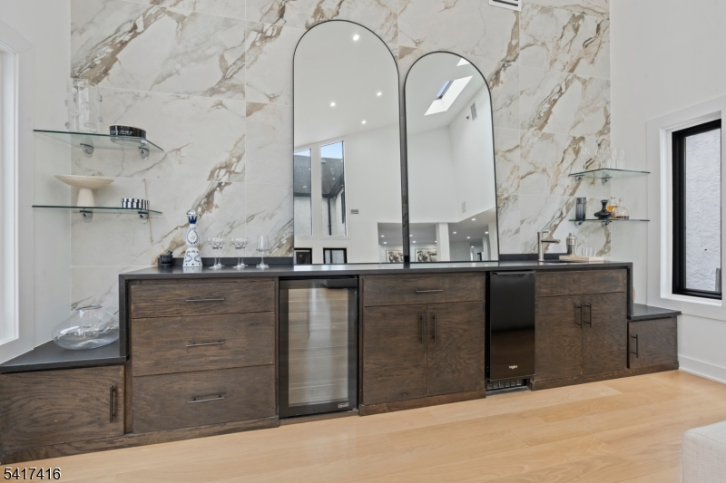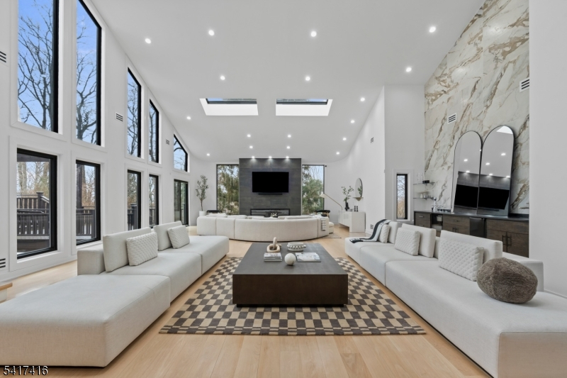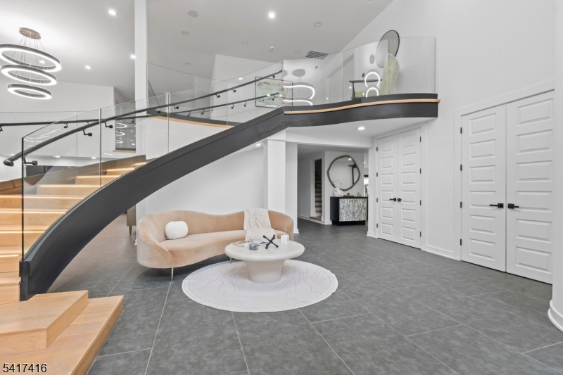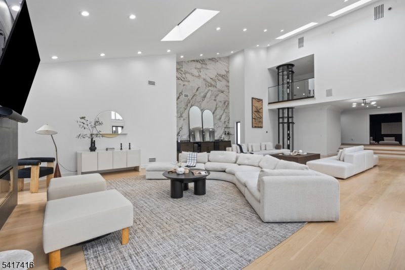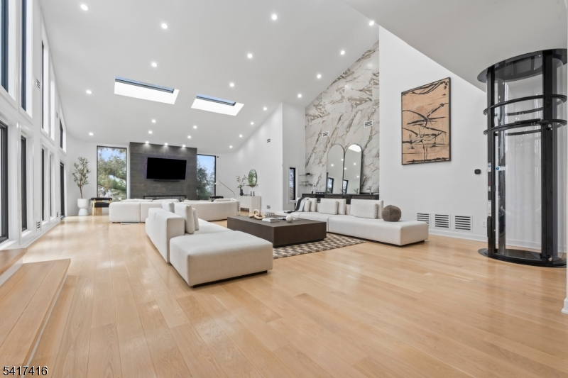 Elegantly designed Contemporary masterpiece showcasing exceptional craftsmanship and impressive scale throughout. A dramatic two-story entry foyer opens to a professionally designed curved glass staircase. Continue onto a soaring two-story living room with cathedral ceilings and an elevator that leads directly up into your 1400 sqft resort style primary suite. Custom moldings and quality hardwood floors enhance the home's refined character. The oversized, state-of-the-art eat-in kitchen is equipped with custom cabinetry, granite countertops, a 20ft. center island with sink, top-of-the-line appliances, a spacious breakfast area, butler's pantry, and built-in glass wine rack. Sliding glass doors lead to a private backyard with deck, ideal for indoor-outdoor entertaining. The expansive finished basement offers a second living space, bedroom suite, laundry room, and walk-out directly to backyard. Meticulous attention to detail throughout. Offering roughly 10,000 square feet of gracious living space, this exceptional residence is ideally located in the highly desirable neighborhood of Livingston, NJ.