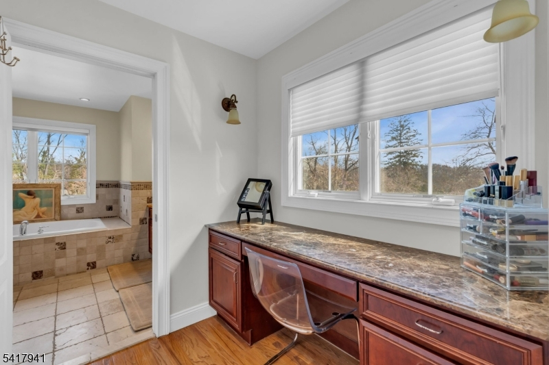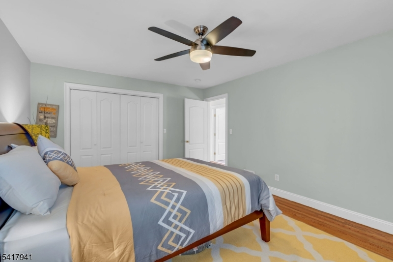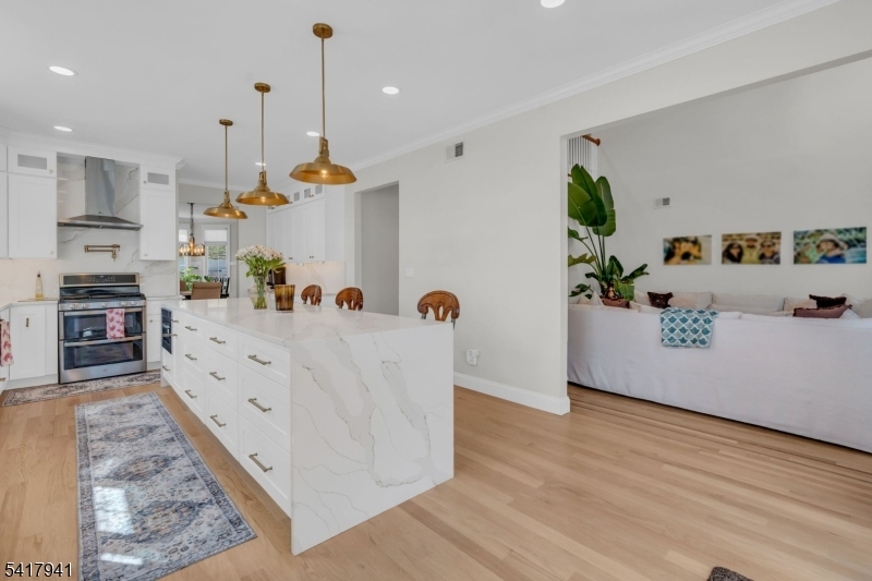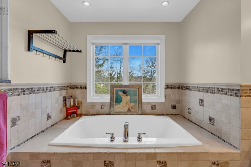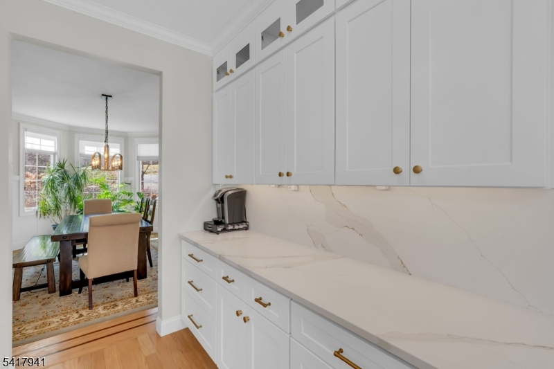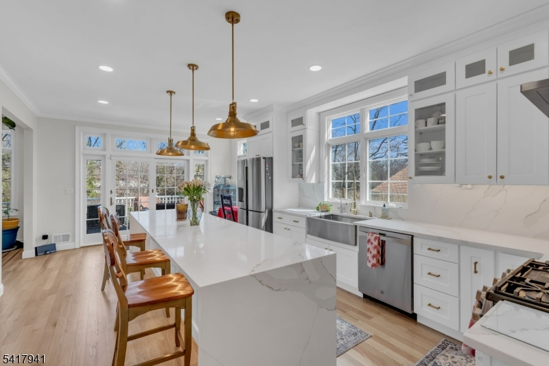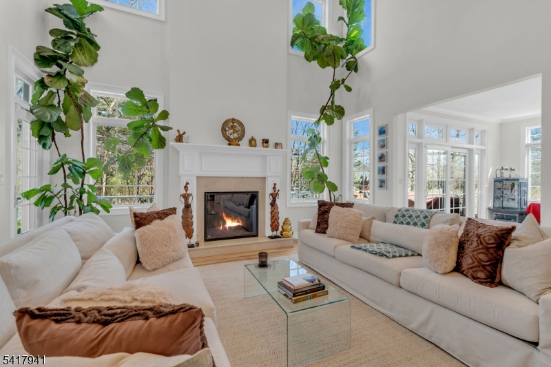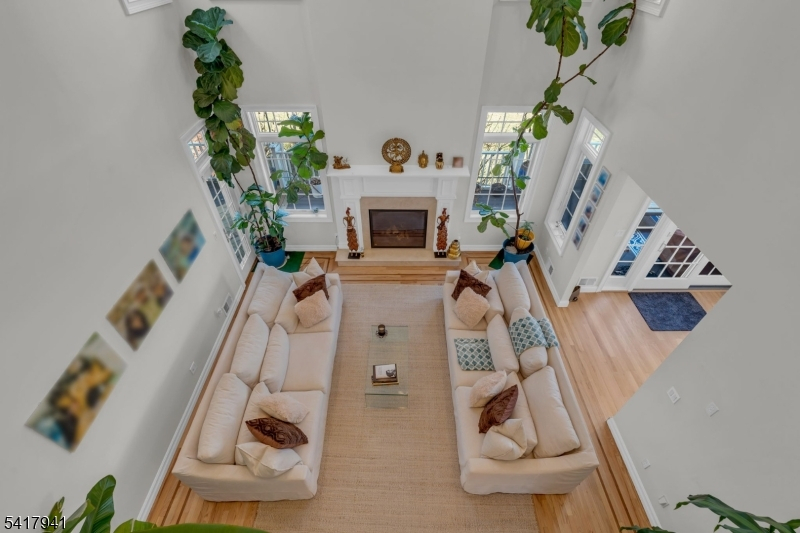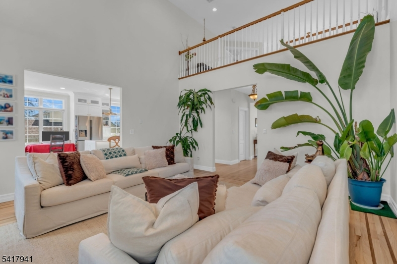 Welcome to this absolutely stunning Colonial featuring a beautiful brick front and professionally landscaped grounds. This exceptional home offers 4 bedrooms, 4.5 baths, and a 2-car garage. Enter through grand double doors into a dramatic two-story foyer with hardwood floors that continue throughout the home and dual coat closets. The formal dining room showcases custom decorative molding and elegant detailing that flows seamlessly into the gourmet kitchen. The kitchen features white shaker-style cabinetry, stainless steel appliances, a pot filler, quartz countertops with matching backsplash, a custom range hood, and a spectacular center waterfall island-perfect for entertaining. Sliding glass doors lead to a spacious deck overlooking the beautifully landscaped yard. The impressive living room features soaring two-story ceilings, a stunning gas fireplace, and oversized windows that fill the space with natural light, along with a beautiful mezzanine overlooking the second floor. The first floor also includes a dedicated home theater. Upstairs, the luxurious primary suite offers double-door entry, a tray ceiling, a spacious walk-in closet, a dedicated makeup vanity area, and a spa-like bath with a Jacuzzi tub, separate shower, and a double sink vanity. The second bedroom includes its own private full bath, while the additional bedrooms are generously sized with ample closet space and share a beautiful hallway bath with dual sinks.