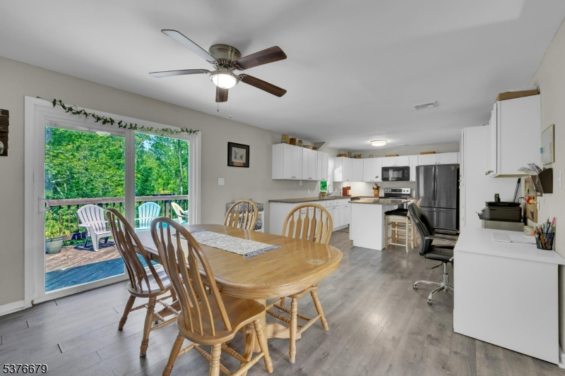 This spacious 3-bedroom, 2-bath home offers a perfect blend of modern updates and natural beauty. The remodeled kitchen features elegant white cabinetry, a center island, granite countertops, and stainless-steel appliances ideal for both everyday living and entertaining. Dining area with sliding doors opens to a deck overlooking serene, wow oded views. The inviting living room boasts a wood-burning fireplace, perfect for cozy evenings. Both bathrooms have been tastefully remodeled, including a private full bath in the primary bedroom.The large lower level provides a versatile recreation room, ideal for gatherings, game nights, or a home theater setup. Located in the picturesque Allamuchy hills, this home offers easy access to Route 80, downtown Hackettstown's shops and restaurants, Centenary University & Arts Center, the Hackettstown train station, and nearby state parks.Don't miss this opportunity to enjoy comfort, convenience, and natural charm all in one!