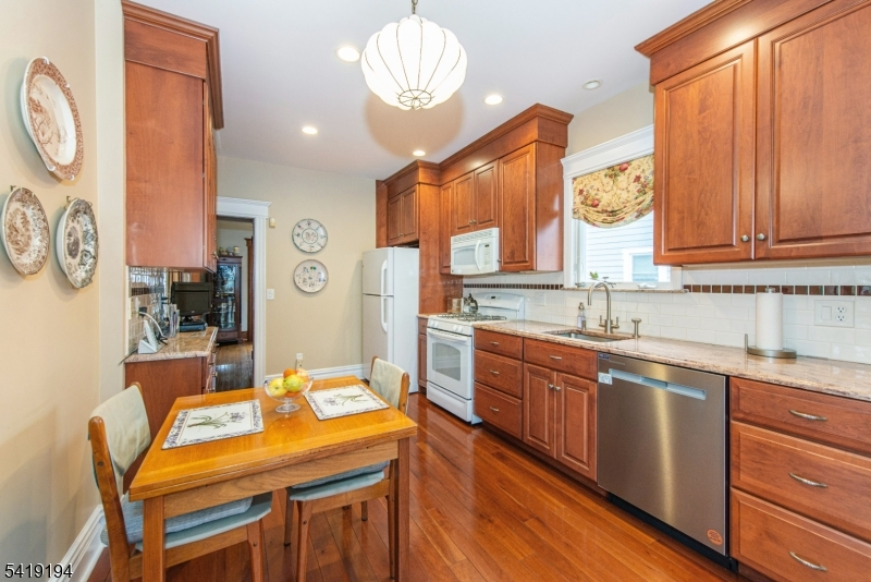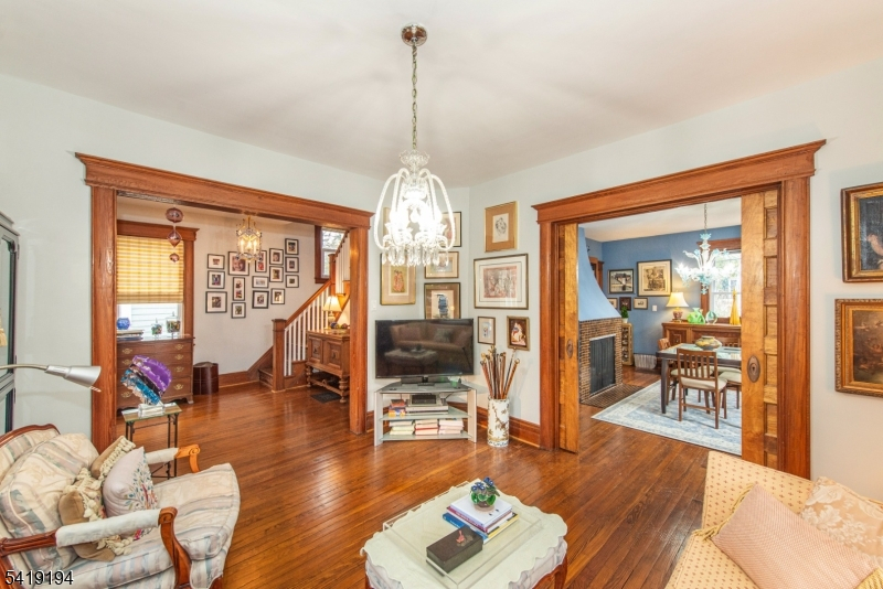 Picturesque storybook colonial in Bloomfield on the Glen Ridge border! This lovingly maintained home welcomes you with a charming wraparound porch and timeless curb appeal. Step inside to a bright and spacious foyer that opens to a formal living room and dining room, highlighted by beautiful woodwork, pocket doors, and a cozy wood-burning fireplace. The expanded eat-in kitchen features a coffee bar and French doors that lead to a large deck'perfect for entertaining'along with a convenient powder room. The second floor offers four nicely sized bedrooms, each with its own closet, and a spacious full bathroom. A walk-up attic, currently used for storage, presents excellent potential to be finished for additional living space. The home also includes a full unfinished basement with washer and dryer. Both the first and second floors showcase beautiful hardwood flooring throughout. Recent updates include new French drains and sump pump (2025), 14KW Generac gas generator (2022), new windows (2021), HVAC system (2021), water heater (2021), front and side steps (2020), deck replacement (2015), roof (2014), and vinyl siding (2013). Enjoy being on the Glen Ridge border with Bloomfield taxes! Conveniently located near Bloomfield High School, the Bloomfield Train Station, other mass transit options, and the shops and restaurants along Bloomfield Avenue. This one won't last - make your appointment today!