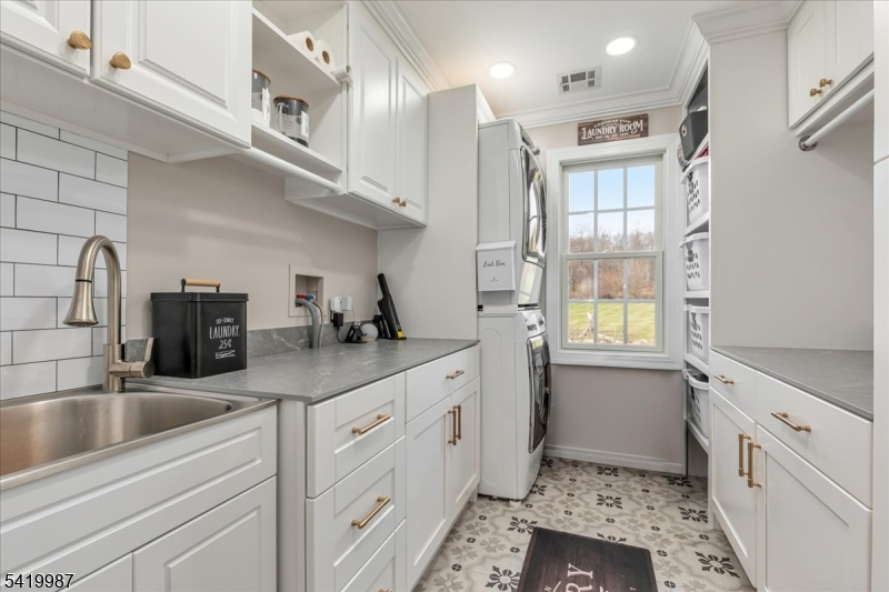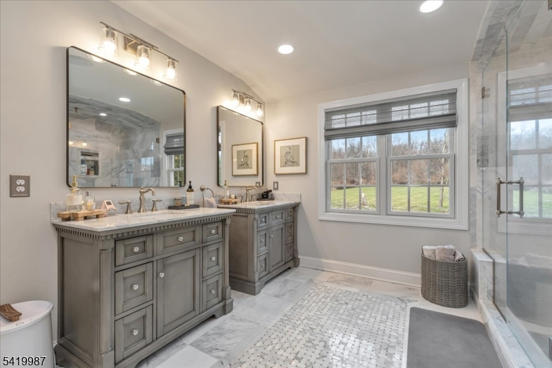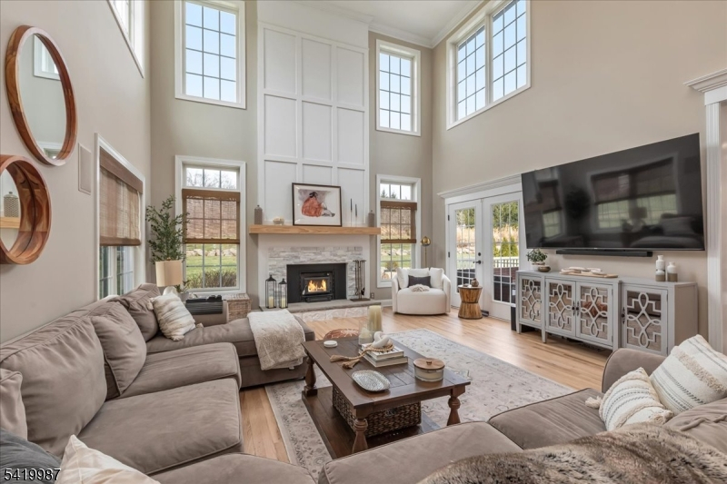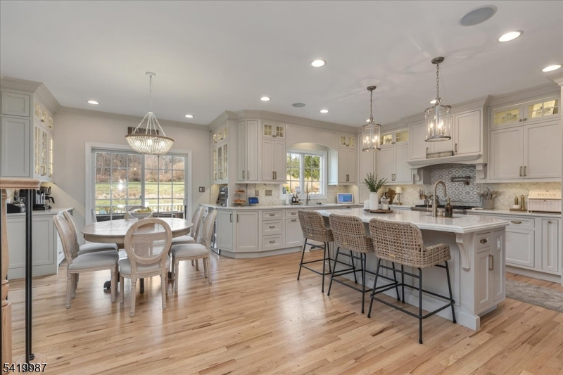 This exquisite custom-built home at 38 Still Hollow Road in the desirable Tewksbury Township, NJ, offers luxurious living with thoughtful upgrades and premium finishes throughout. Nestled in a serene setting, this residence combines sophisticated elegance with exceptional functionality, perfect for entertaining and everyday comfort.Step inside to discover a stunning custom kitchen designed for the discerning chef, featuring high-end appliances, ample cabinetry, and thoughtful details. The adjacent living room impresses with a dramatic coffered ceiling and elegant built-ins, creating a warm and inviting focal point.Custom moulding graces the interiors, adding timeless architectural charm. Built-in speakers are wired throughout the home and extend to the exterior, allowing seamless audio enjoyment indoors and out.The first floor includes a versatile 5th bedroom/office with custom built-ins and a tailored custom office closet, ideal for remote work or guests. A practical mudroom features custom lockers and benches for effortless organization.Upstairs, the master bedroom suite is a true retreat, complete with a custom dressing area, built-ins, and a cozy electric fireplace. All bathrooms have been updated, with radiant heated floors in the primary bath and the Jack-and-Jill bathroom for added luxury.Just refinished hardwood floors (November 2025) gleam throughout much of the main living areas, enhancing the home's fresh, move-in-ready appeal.