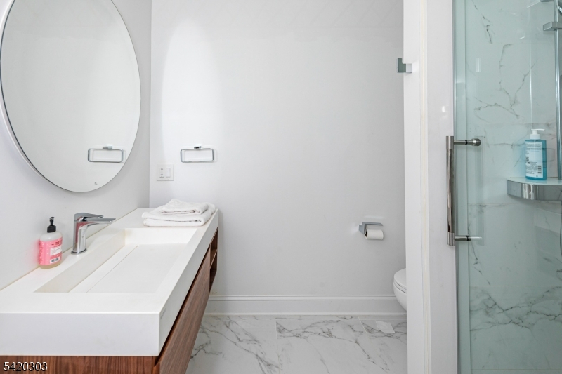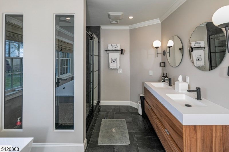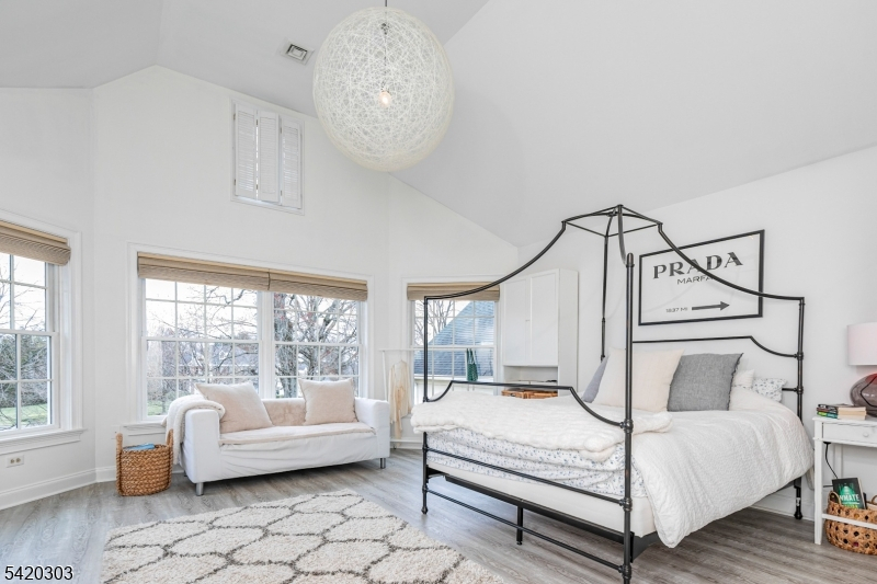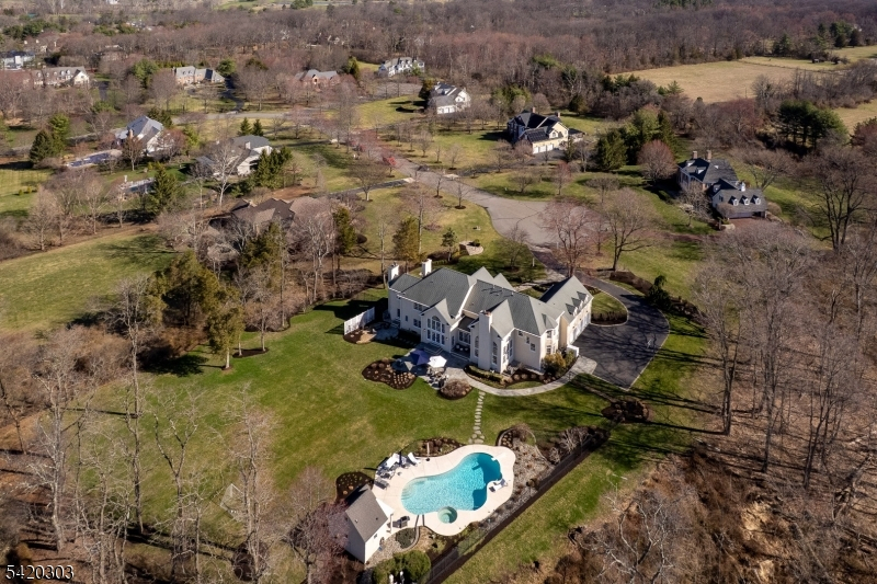 Anchoring a picturesque cul-de-sac in an estate-style Montgomery Township enclave, this striking home is defined by soaring ceiling heights and a luminous, all-white palette that amplifies light and space at every turn. A dramatic two-story foyer with a sweeping butterfly staircase sets the tone, opening to interiors that feel both refined and effortless. At the heart of the home, the marble-dressed kitchen openly flows into the great room, which rises to impressive heights, wrapped in expansive windows that frame long, scenic views and flood the whole space with sunlight. Step out to the stone terrace, the stage for magical sunsets and memorable summertime entertaining. The private, resort-like backyard is surrounded by bucolic rolling land with a free-form pool and spa as the centerpiece. A pool house with a kitchenette and half-bath is as darling as it is functional. The home's thoughtfully designed layout includes a first-floor guest wing complete with its own fireplace, offering comfort and privacy for visitors. Upstairs, the primary suite is elevated by a chic, new bathroom with a luxurious rain shower and heated tile. This palatial retreat also boasts a sunlit sitting area, fireplace and generous walk-in closets. Additional bedrooms are well-proportioned, while an enormous bonus room invites epic sleepovers and imaginative play. The three-car garage and full semi-finished basement easily store seasonal items and more.