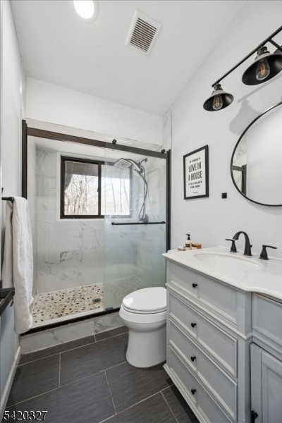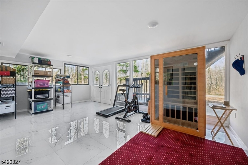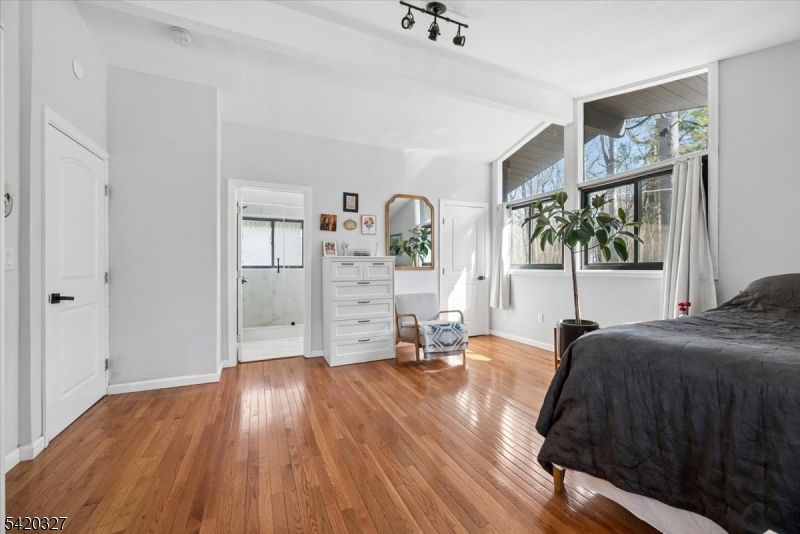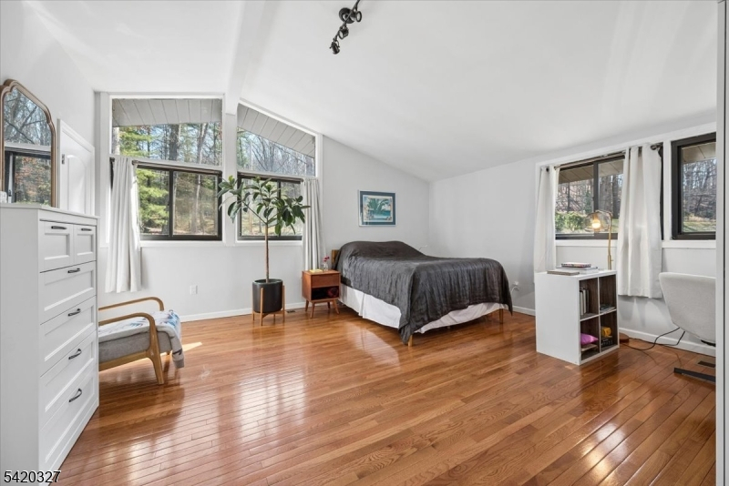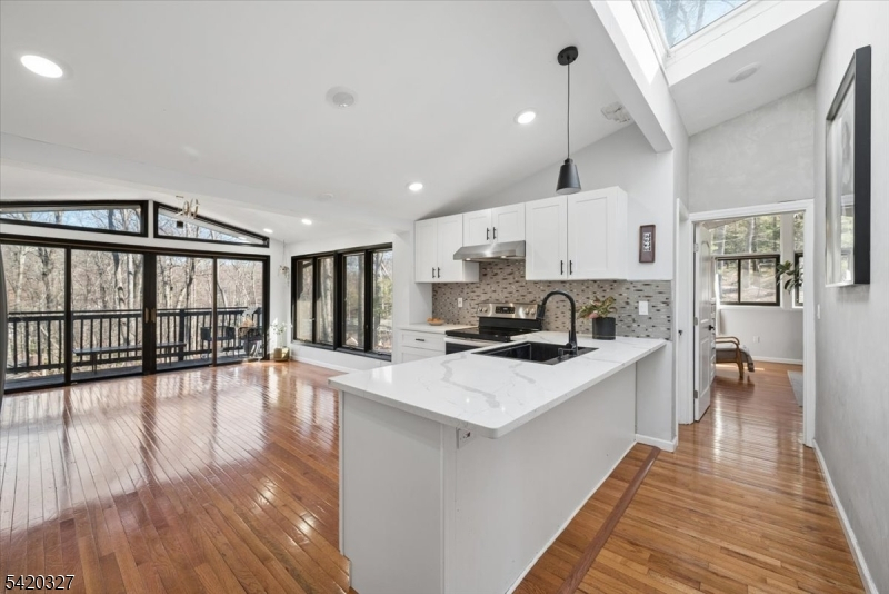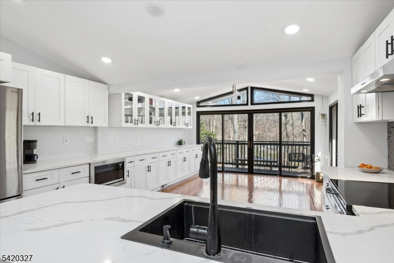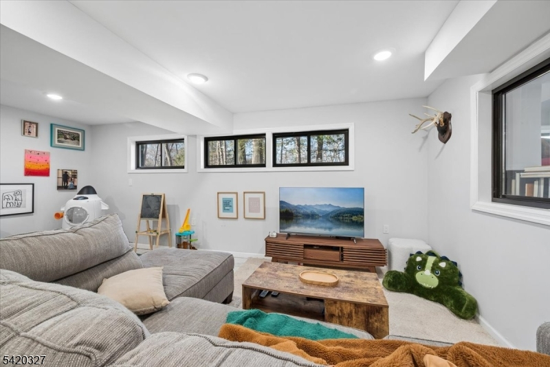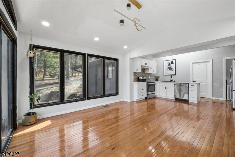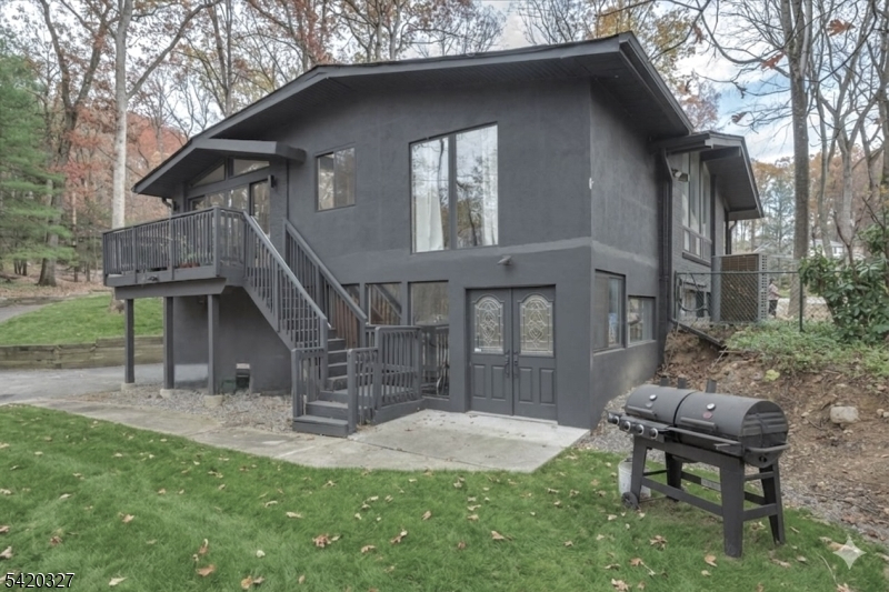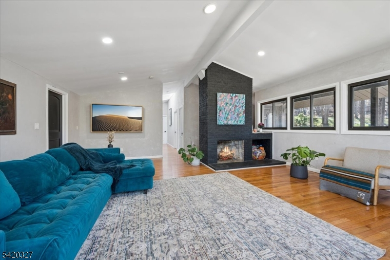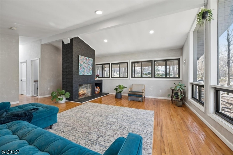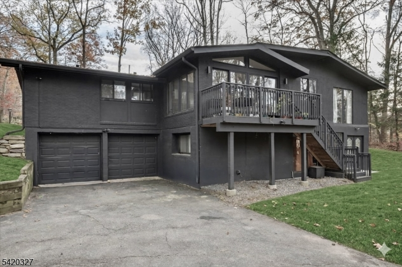 Mid-Century Modern Gem on a Corner Lot in Denville. Welcome to 2 Audubon Dr, a beautifully updated Mid-Century Modern Ranch set on a desirable corner lot in one of Denville's sought-after neighborhoods. This distinctive home blends timeless architecture with modern updates, offering 4 bedrooms, 3.5 baths, 2-car garage, circular driveway, and a versatile layout across two finished levels.The main level showcases an expansive living room with a striking fireplace, walls of windows that flood the space with natural light, and a seamless flow into the kitchen area. The updated kitchen features sleek cabinetry, generous counter space, and direct access to a private deck, ideal for indoor-outdoor entertaining. The primary suite offers a full bath and a walk-in closet, complemented by two additional bedrooms and a full hall bath. The walkout lower level offers exceptional flexibility with a spacious family room, recreation area, additional bedroom, full bath, and convenient half bath, perfect for guests, work-from-home, or extended living. A dedicated laundry area, utility space, and garage access add convenience.Additional highlights include hardwood floors, recessed lighting, a 2-car garage, and multiple outdoor areas to enjoy the natural surroundings. Ideally located near parks, top-rated schools, shopping, dining, charming Denville downtown, and major highways, this home offers both privacy and convenience in the heart of Denville.