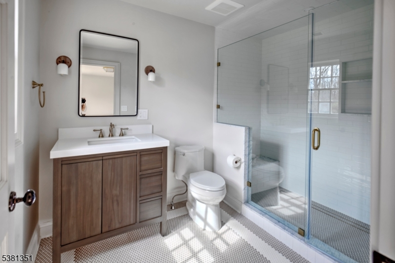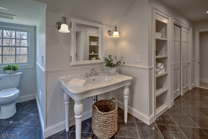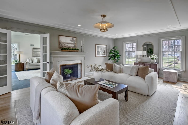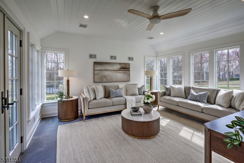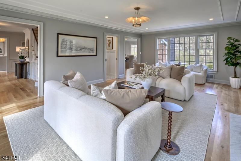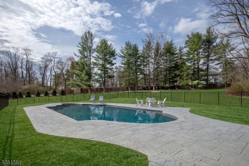 Stunningly remodeled in 2025-26, a gated Harding residence showcases an abundance of high-end materials, finishes and updates. The sunny 5 bedroom, 6.1 bath layout offers a designer epicurean kitchen where a center island seats 5, a fireside great room with stylish wet bar, elegant formal dining room, living room graced by a fireplace, view-filled sunroom, mud room and laundry room. A full bath located off of the mud room services the pool. All bedrooms are en suite, while additional living space is available on the finished third floor and lower level. The third floor features a full bath, dormers, walk-in attic space and a cedar closet. Further amenities include hardwood, stone and marble floors, second floor washer and dryer, a 3-car garage and new HVAC. Outside, a refreshing heated pool with a spacious paver patio and handsome fence. There is a roomy slate and brick terrace which invites warm weather entertaining. Broad lawns provide space for active recreation. and stone walls accent the property. The driveway is edged with granite blocks. The cul de sac location is serenely private. Just minutes from downtown Morristown, Chatham and Madison for buses, trains and shopping, it's also close to I-287, Newark Liberty International Airport, top public and private schools, golf courses, equestrian facilities, parks and The Mall at Short Hills. "Box Car" transportation is available to nearby train stations.