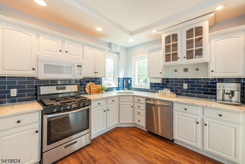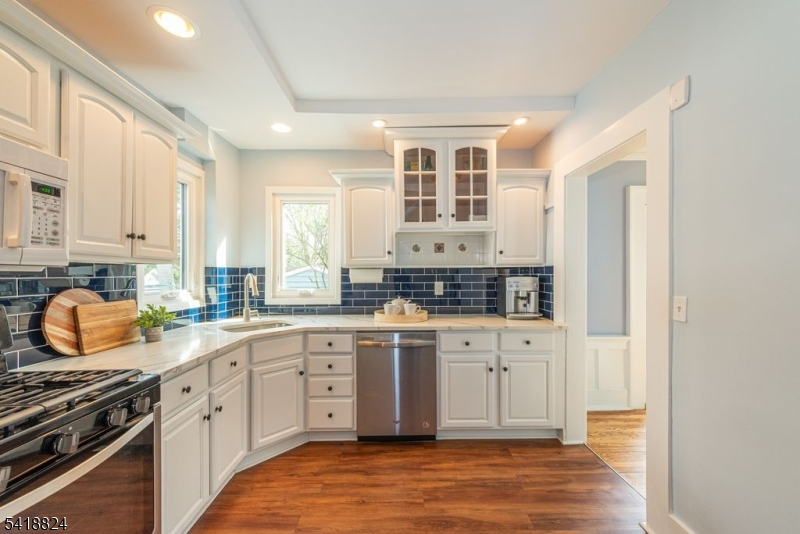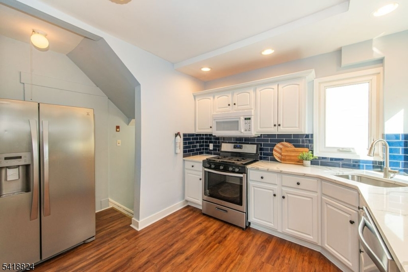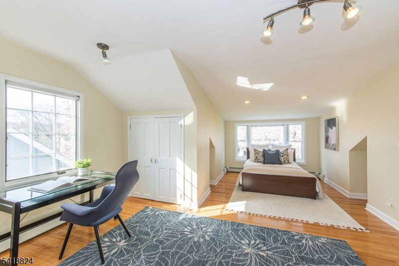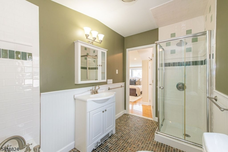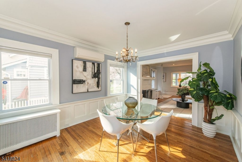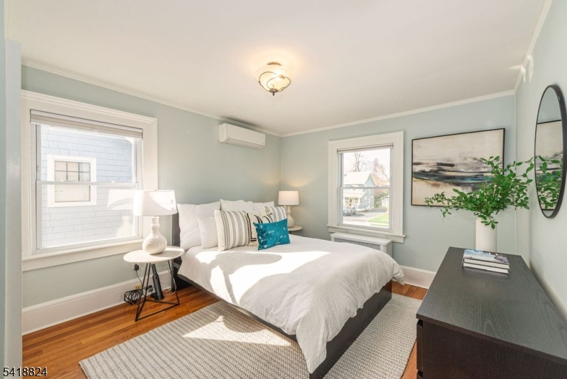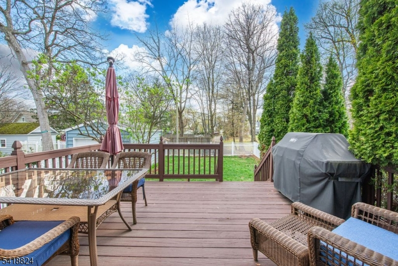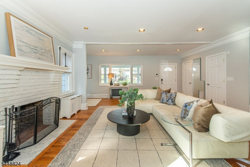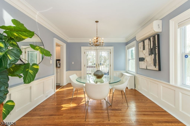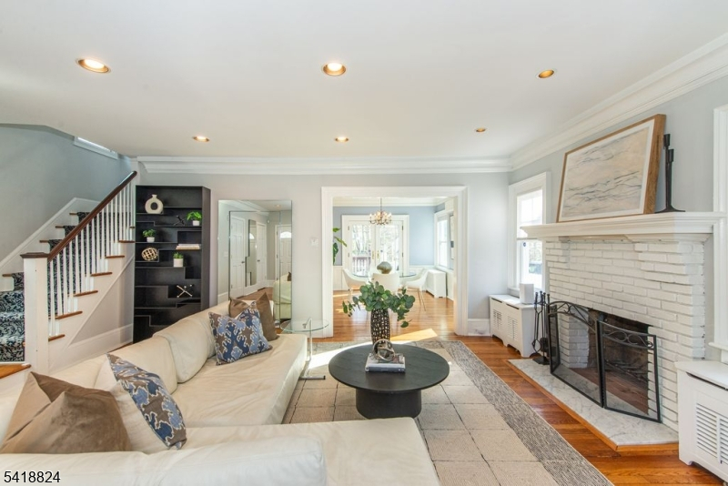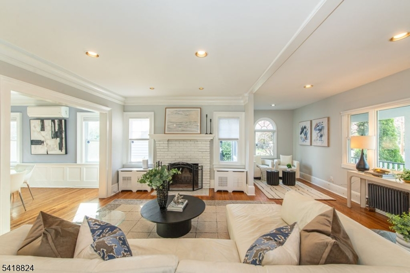 Set back from the tree-lined street and with striking curb appeal .. first impressions do not disappoint! Once the front door is open.. there is more to appreciate! Step inside from the inviting front porch to the spacious living room with office or reading alcove, recessed lighting, crown molding and wood burning fireplace with new hearth. The dining room has wainscoting panels and is bright and cheerful, accessing the deck and deep property through French doors. Newer PVC fencing fully encloses the yard ...no worries about pets escaping! The remodeled kitchen offers white cabinetry, quartz counters, new backsplash, ss apps. An updated powder room and convenient mudroom complete the first floor. The second floor includes three bedrooms and updated bath with new vanity, lighting, tiles and hardware. The third floor is a primary oasis, with two deep double closets, sitting area and office space plus updated bath with separate shower and jacuzzi tub. Basement is partially finished with the perfect recreation room, a separate storage space, laundry room and powder room. Hardwood floors throughout. Six split ac units keep the entire house cool in summer. Most windows have custom shades. Detached garage is especially large and easily fits a car and more. As for location? What could be better? 15 minute walk to train, Farmer's Market, plenty of restaurants and shops. Two parks within a short walk. Welcome to the neighborhood!