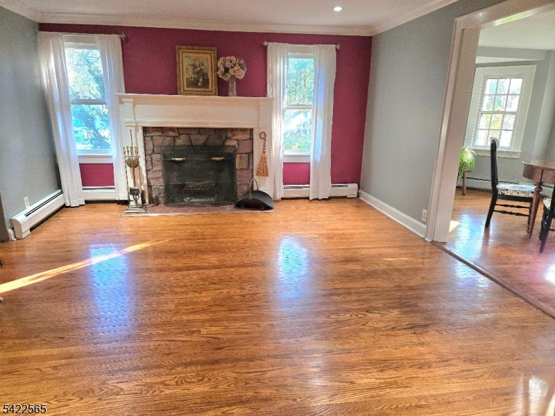 This beautiful corner property home is not a drive by, much larger than it appears, 1 stone fireplace in living room, kitchen, dining room, den with wood burning stove, laundry room with half bath, foyer, sunroom, family room with fireplace and kitchen, bedroom with full bath and walk in closet. 2nd floor primary suite with full bath, linen closet and walk in closet; 2 additional bedrooms and another full bath; large attic with 2 good size windows and electric. full unfinished walk out basement (3 sections) with above ground oil tank can be finished. 20x40 inground pool, large 18x20 shed, 2 decks; home has always been used as one family but is legal two family. Close to Mt. Arlington and Dover train stations, close to Rts 23, 15 & 80. Under 1 hour to NY or PA. Close to Golfing, Boating at Lake Hopatcong & Skiing at Vernon Valley. Home is in excellent condition. Yard has many perennials and small bridge to back of property to shed and garden.