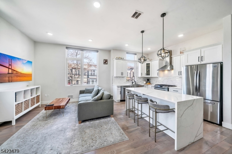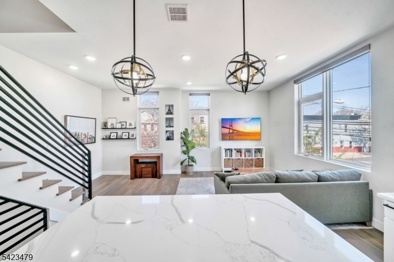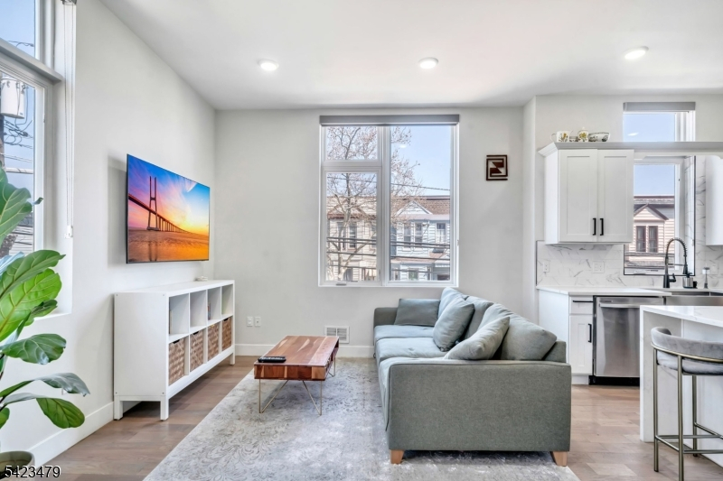 Luxury townhouse-style condo offering the perfect blend of space, style, and location in Jersey City Heights. Built in 2021, this 3 bedroom, 3.5 bath home spans three full floors of modern living. Enter from your private custom yard or directly from your non-tandem garage parking into a versatile first floor living/den area featuring a wet bar and half bath. Ideal for guests or a home office. The second level showcases 12 ft ceilings and 1 of 3 bedrooms with an open-concept kitchen and living space with a center island, designed for seamless everyday living and entertaining. The third floor offers 2 spacious bedrooms with custom closets and a thoughtfully designed dedicated laundry area. Enjoy a private rooftop deck with stunning NYC skyline and sunset views. Located just 1.5 blocks from Central Ave, close to shopping, dining, and transportation. A rare opportunity to own a newer construction home with private outdoor space and garage parking. Offering significantly more space and value than comparable NYC and Brooklyn properties.