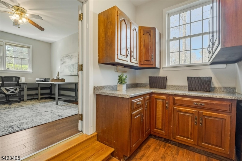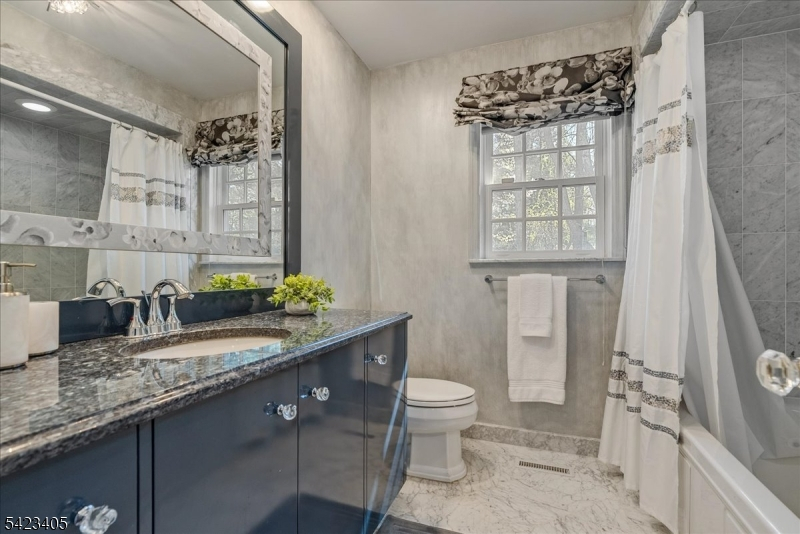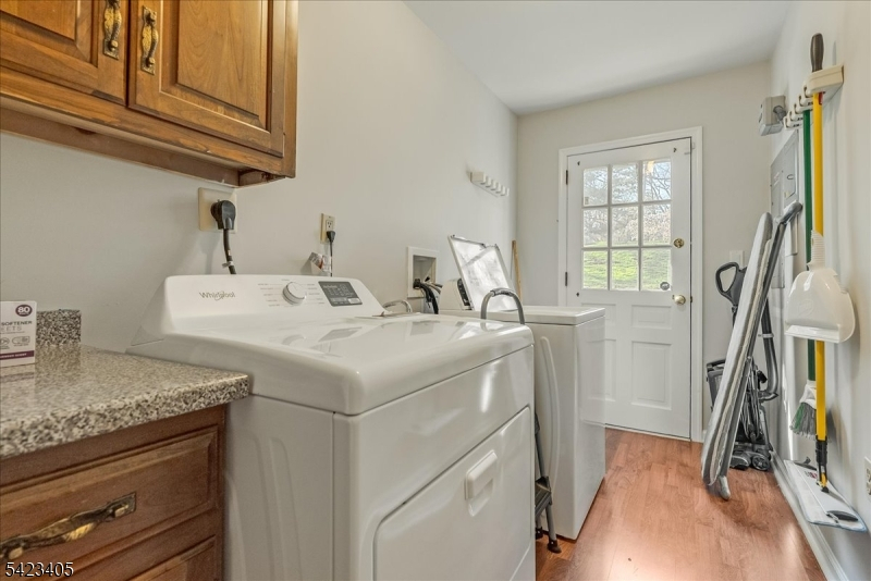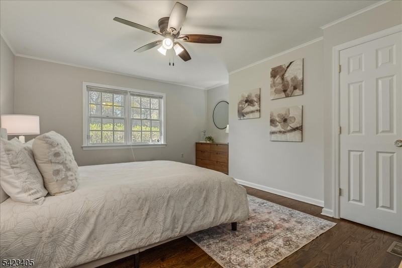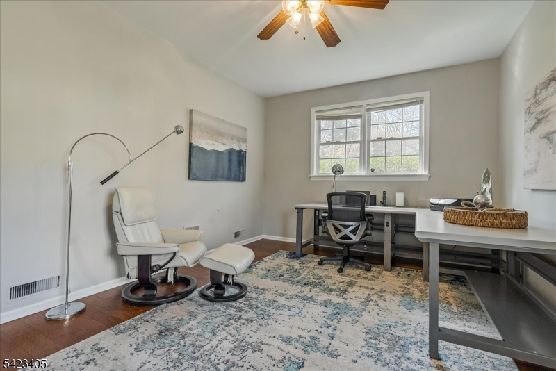 Stunning no-step ranch located in the prestigious Llewellyn Park, set on nearly one acre within a private gated community offering security, tranquility, and natural beauty. This 4-bedroom, 2.5-bath home features true one-level living with an ideal open floor plan. Sun-filled interiors showcase gleaming hardwood floors and spacious rooms throughout. The updated kitchen flows seamlessly into a custom TV room with spectacular built-ins, perfect for everyday living and entertaining. A dedicated home office with a separate entrance provides flexibility for work-from-home or professional use. Additional highlights include an attached 2-car garage and a massive unfinished basement offering endless potential for a home theater, gym, recreation space, or additional living area. Enjoy outdoor living on the magazine-worthy patio overlooking expansive, beautifully maintained grounds with lush lawn and mature greenery, providing exceptional privacy. Conveniently located approximately 24 miles from Midtown Manhattan, offering access to world-class dining, shopping, and commuting options. A rare opportunity to own a premier property in one of New Jersey's most sought-after gated communities.