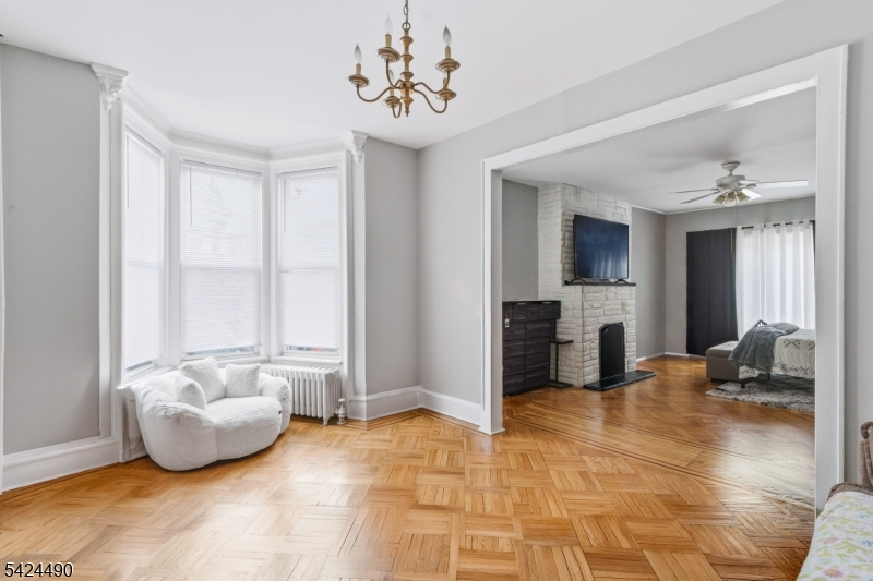 Well-kept three-family home offering approximately 3,400 sq ft of living space on a deep 43.91 126 lot. Interiors are bright and updated, featuring hardwood and parquet floors, modern ceiling fans, and generous natural light. Units include inviting living areas with bay-window seating, fireplaces, and clean, neutral finishes. Kitchens and baths are well-maintained, with a mix of white and dark cabinetry, tile backsplashes, updated vanities, and both tub and walk-in shower options. A partially finished basement adds flexible storage space. Strong curb appeal with gray siding, dormer windows, and manicured landscaping in a desirable Bayonne neighborhood.