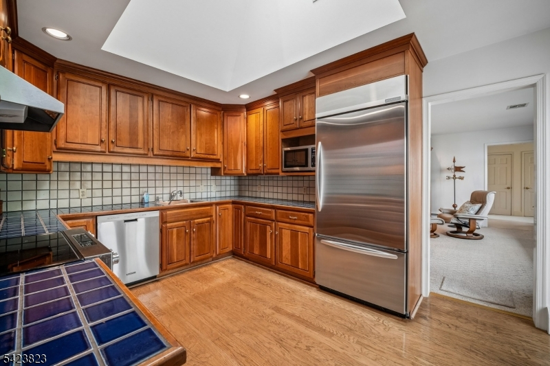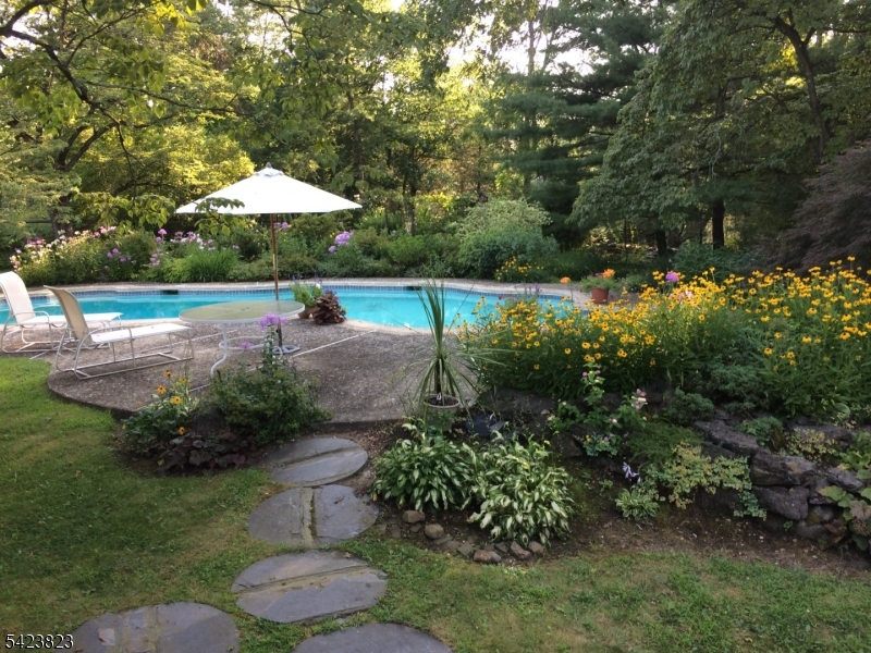This ranch-style home delivers single-floor living with an easy, comfortable flow. Natural light fills the main level throughout. The spacious living room is the heart of the home -- knotty pine highlights the wood-burning fireplace, and there are picture windows on all sides. The family room sits adjacent to the kitchen with another large picture window perfectly framed for backyard birdwatching. The kitchen features new stainless steel appliances and a coffee bar. Steps away, a sun-drenched sunroom overlooks the gorgeous backyard -- an ideal breakfast room and morning retreat. The primary suite addition offers direct backyard access, generous closet space, and room to unwind. Two additional bedrooms and a full bath round out the single-level footprint. The in-ground pool anchors an outdoor space built for dining, lounging, and gardening. The finished lower level includes a rec room with built-in shelving, a workshop, laundry room, and a potting shed. The two-car garage adds everyday convenience. Located in Millington (Long Hill Township, Morris County, NJ), minutes from the Great Swamp National Wildlife Refuge, major roadways, shopping, and the Millington NJ Transit Station -- a direct line to Summit and New York Penn Station. Key features: ranch, single-floor living, family room, stainless appliances, coffee bar, sunroom, primary suite addition, in-ground pool, wood-burning fireplace, finished lower level, two-car garage, Millington NJ Transit.