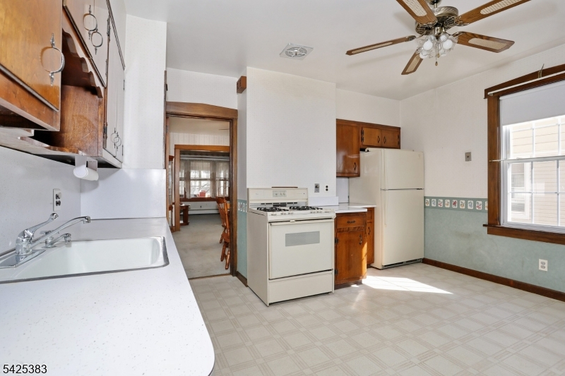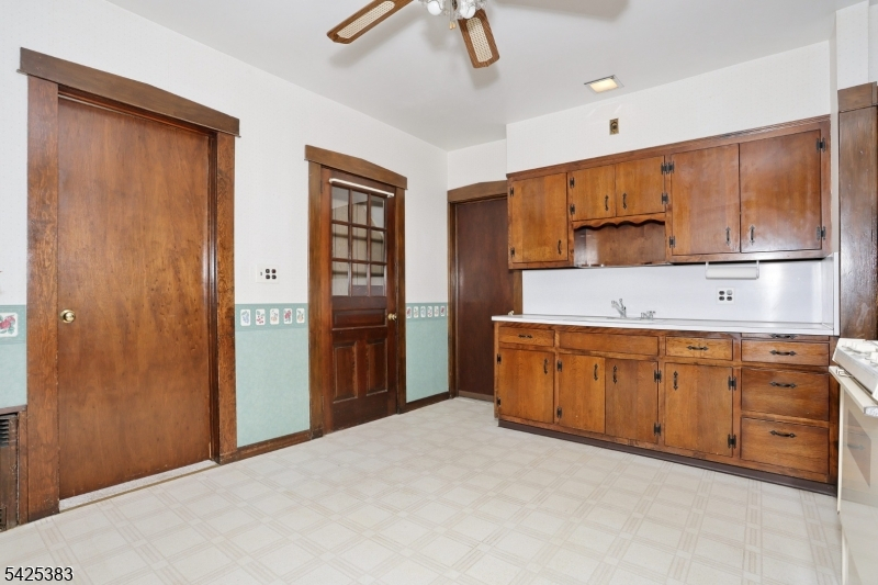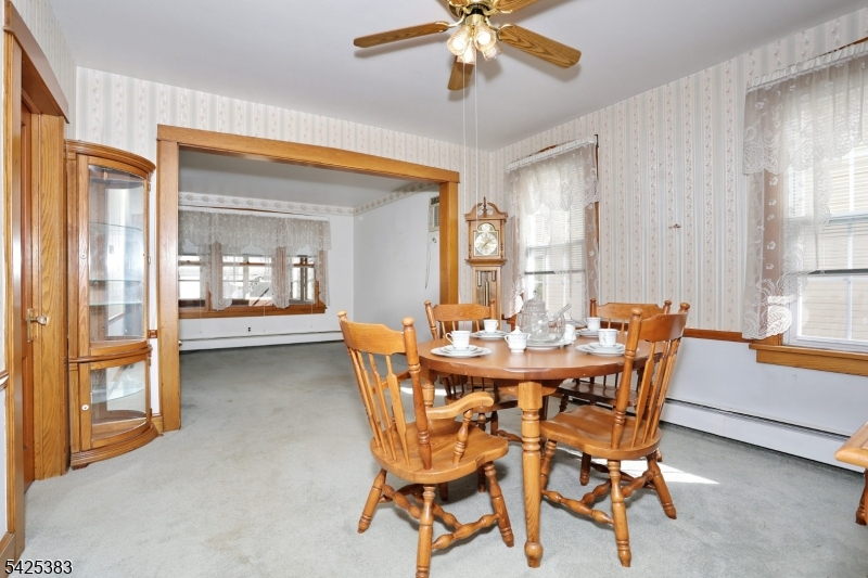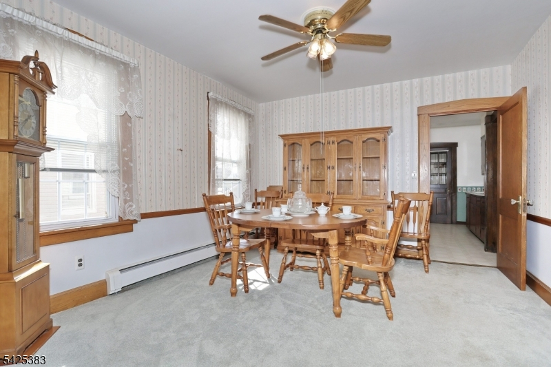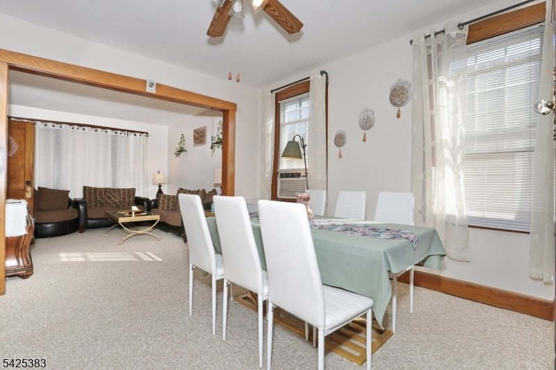 Solid 5 bedroom 2 Family on a deep lot with an oversized 2 car garage with off street parking for 8 plus cars located less than a mile from NJ Transit train. Enjoy maintenance free vinyl siding, new roof installed just 2 years ago, 2 Utica gas boilers are 5 years young, separate electric, gas and heat for each unit. As you enter this home, you'll instantly feel the love and charm that the owner of 5 decades poured into raising his family here. Original chestnut trim and railings, stained glass window ,primary bedroom addition on the first floor, walk up attic with high ceilings , 2 enclosed porches, full basement with laundry hook up as well as front and rear entry for each apt. With some interior updating, this home will shine like the diamond it is. Long term, great tenant on 2nd floor would love to stay. This is an estate sale and being sold is as-is condition.